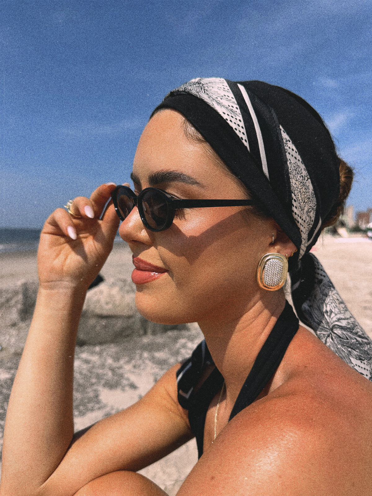 Sleek, beautiful, and effortlessly polished. The Amara earrings feature a softly rounded silhouette framed in polished gold, with a pavé-set crystal centre that catches the light from every angle. Understated yet eye-catching, they’re the perfect balance of bold and refined for everyday wear or elevated evenings. Light enough to wear all day.