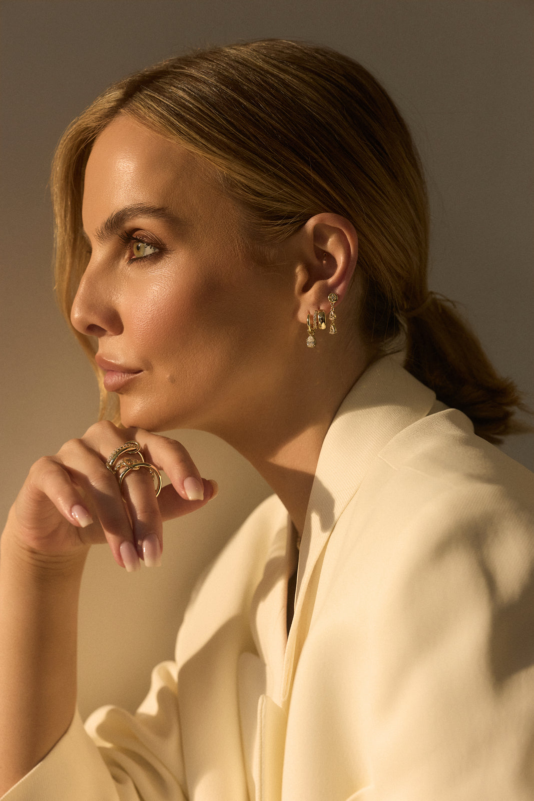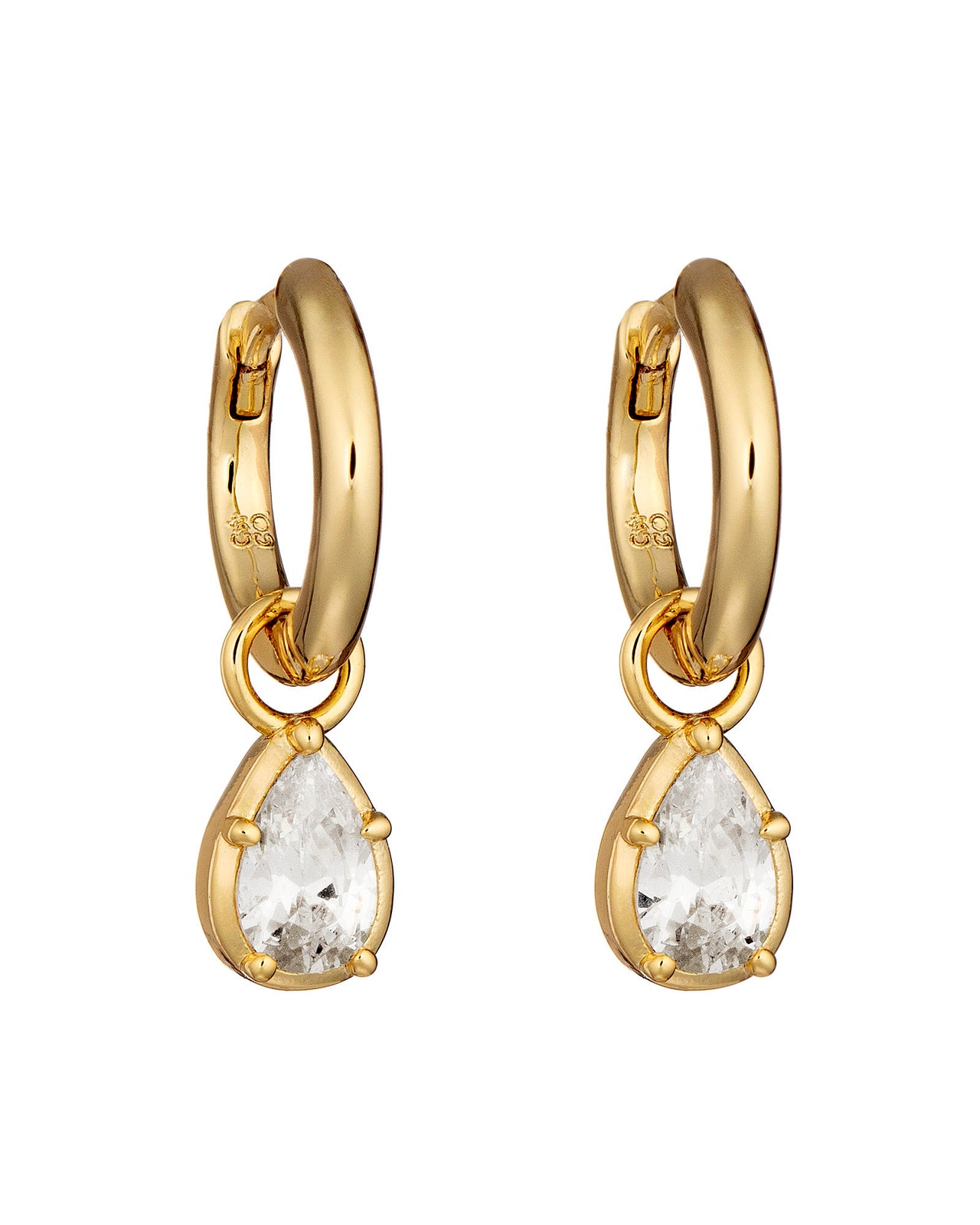 Joanna Cooper x C&Co exclusive collection. Crafted in 2 micron 14ct gold plating with extra e-coating, the prettiest new diamond drops which can be taken on or off their golden hoops and worn multiple ways.