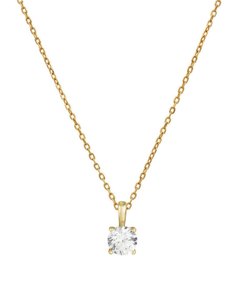 The prettiest new solitaire necklace in 2 micron 14ct gold plating. A perfect 4mm cubic zirconia crystal made to shimmer and look like as pretty as a real diamond.