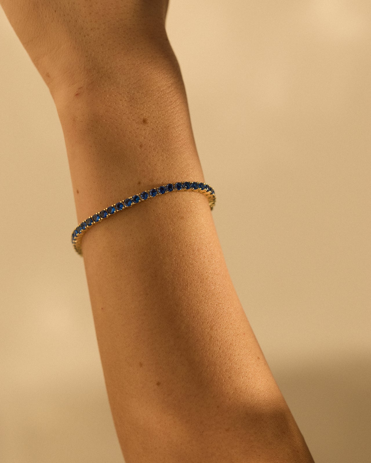 Our new elevated tennis bracelet in a gorgeous sapphire blue with box clasp, in grade A crystal for extra sparkle. 3mm stones. A perfect bracelet to wear time and time again. This is a classic which you will love for years to come.