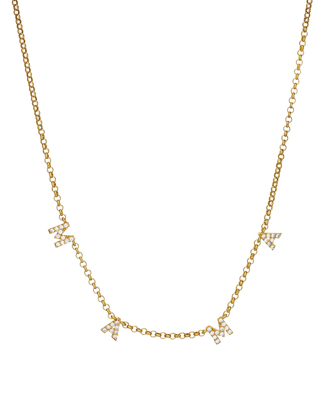 Beautiful mini crystal-encrusted MAMA letters on thickly layered 18k gold plate on solid sterling silver.